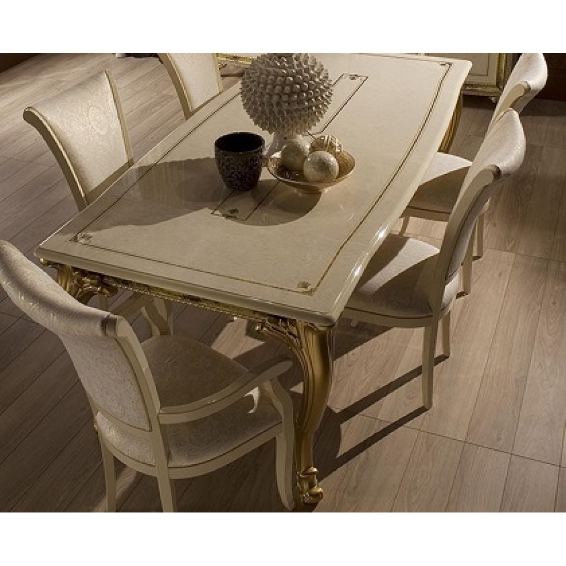 Обеденный стол (раздвижной) Катя (беж) от Российской фабрики "ДИА мебель". Выполнен в классическом стиле, бежевый цвет с элементами позолоты и глянцевым покрытием на фасаде придают атмосферу богатства.Такой раздвижной стол будет незаменим в вашей гостиной, не займет много места и с легкостью поможет Вам собрать большую компанию.