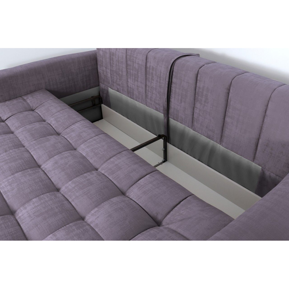 В основании дивана - металлокаркас. Такая конструкция выдерживает большие нагрузки, сохраняя первоначальную форму.