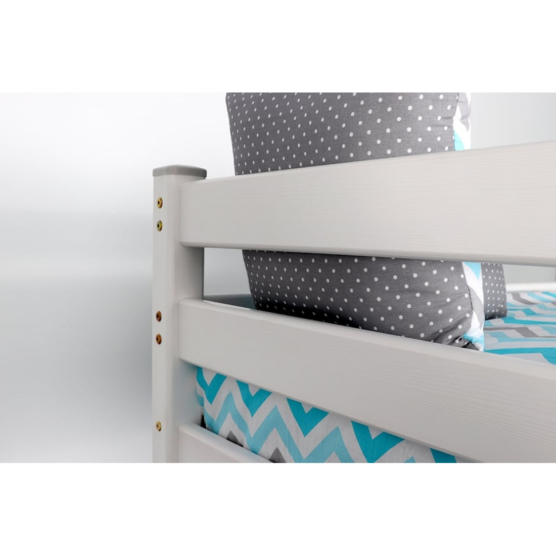 Двухъярусная кровать Адель выполнена в спокойных тонах, подойдет как для спальни мальчиков, так и для девочек.