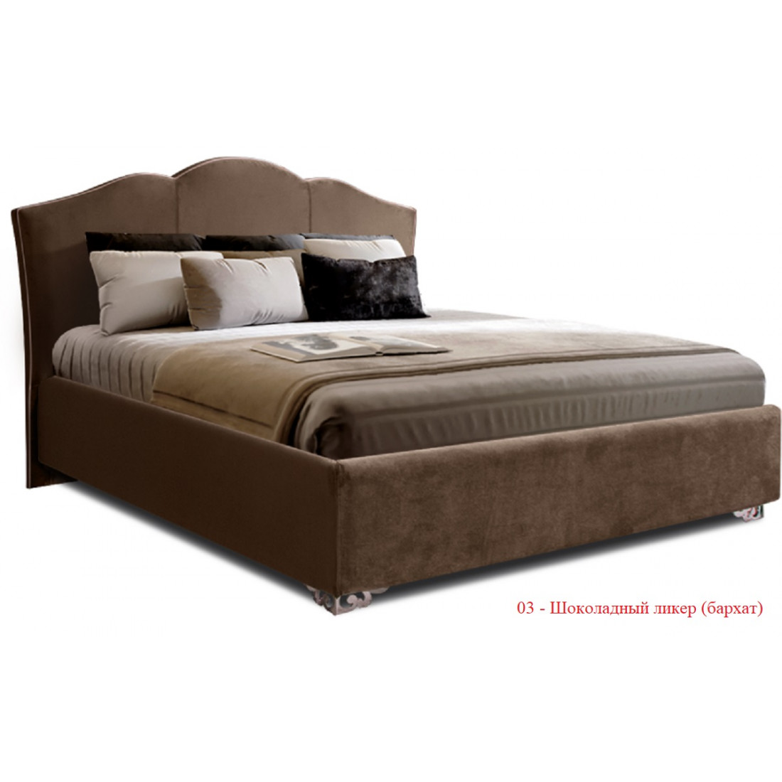 Кровать «Lotos» обтянута бархатом итальянского производства. Для выбора Вам доступно два цветовых решения:«шоколадный ликер» (темный вариант) и «жемчужный берег» (светлый вариант):