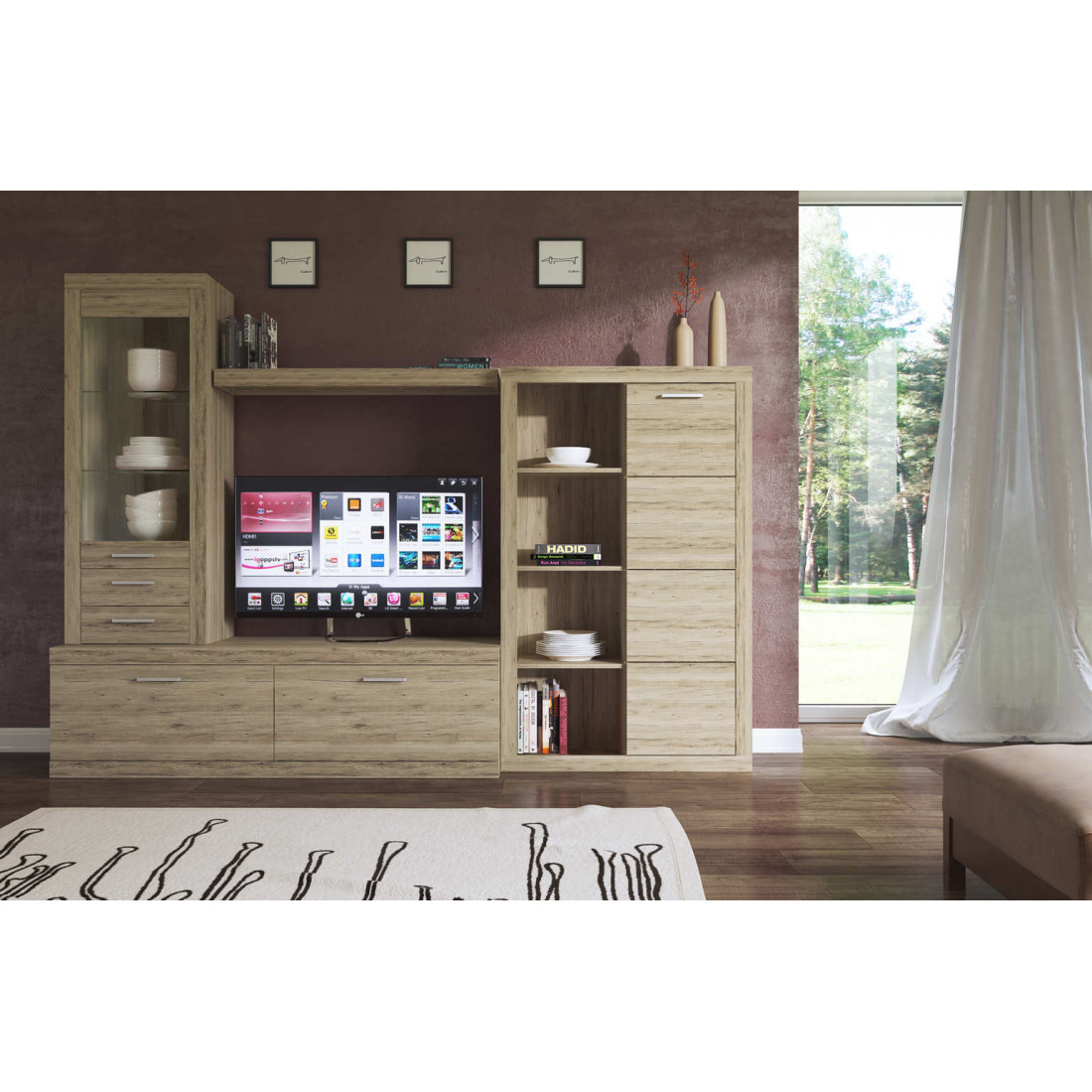 2. 4 варианта тумб RTV с выдвижными ящиками на шариковых направляющих. 2 размера надставных полок для RTV-тумб (полка TVB и полка TV), позволяющих установить выше телевизор. Варианты навесных полок, соответствующих по размеру тумбам для телевизора. Тумба RTV 2S2NL имеет глубину 351 мм, что позволяет составить модули, имеющие такую же глубину, в одну линию без выступающих элементов.