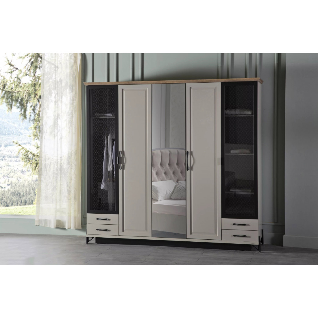 Пятидверный шкаф для одежды с зеркалом "Палвин" – это великолепное изделие в современном стиле.