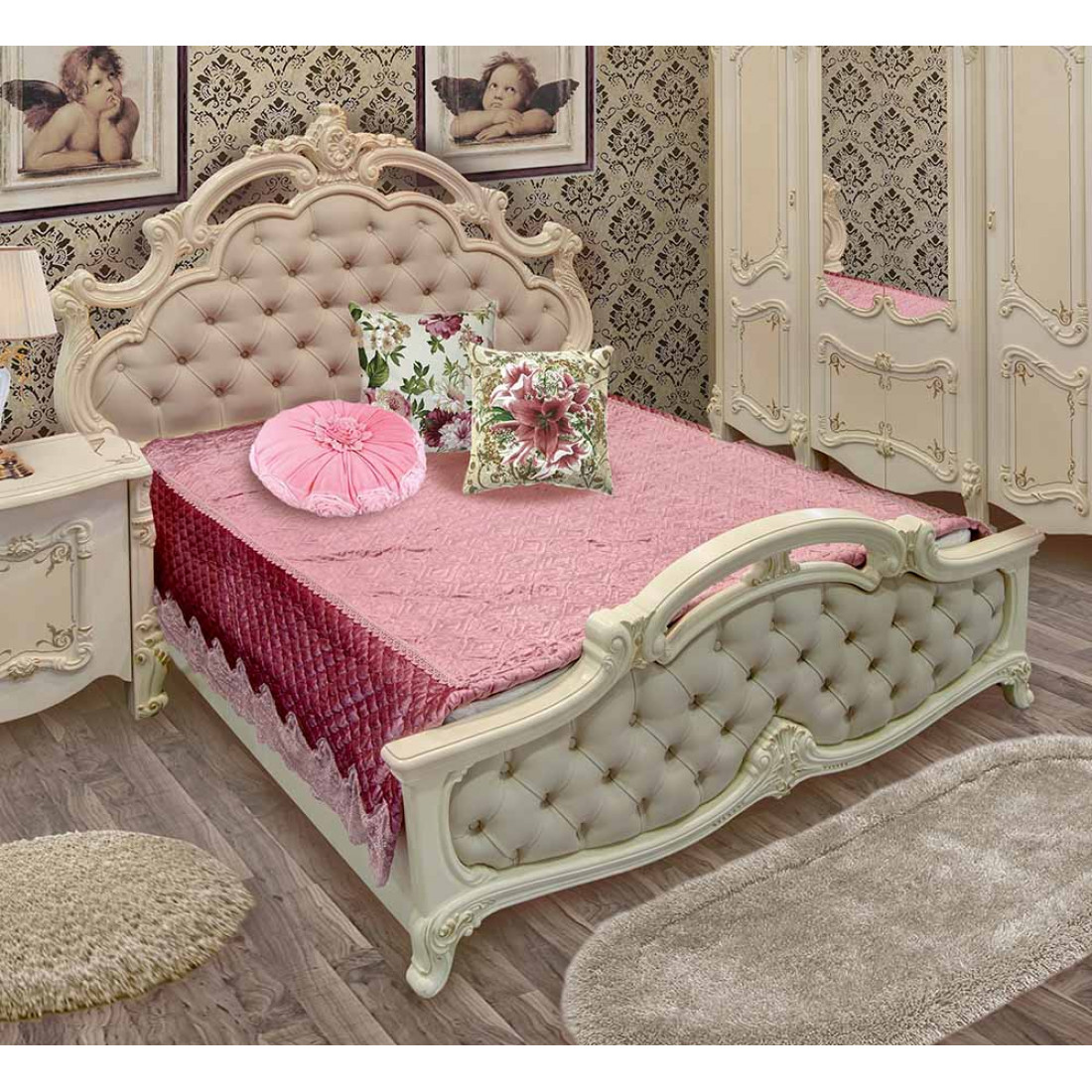 Спальня Рафаэлла от Российской фабрики «ДИА мебель», выполнена в элегантно нежном бежевом цвете. Такая спальня в сочетании с глянцевым покрытием и резной вставкой придаст незабываемую атмосферу роскоши. Большая комфортабельная кровать окунет Вас в незабываемый крепкий сон. Объемный четырехстворчатый шкаф поможет забыть о лишних вещах и сделать комнату многофункциональной. Большое зеркало визуально расширит пространство. Вся коллекция «Рафаэлла» предназначена для людей умеющих по достоинству оценить комфорт.